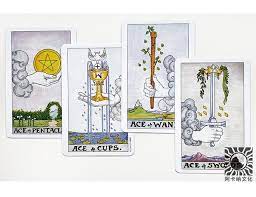 A Tarot deck consists of the Major and Minor arcana. The minors are further devided into 4 suites of court and pip cards. These 4 suites are Swords, Batons, Cups, and Pentacles and are associated with the alchemaic elements of air, fire, water and earth respectivly. Modern playing cards have inherited these as the suites of spades, clubs, hearts and diamonds. Similarly there are 10 pip cards in each suite.